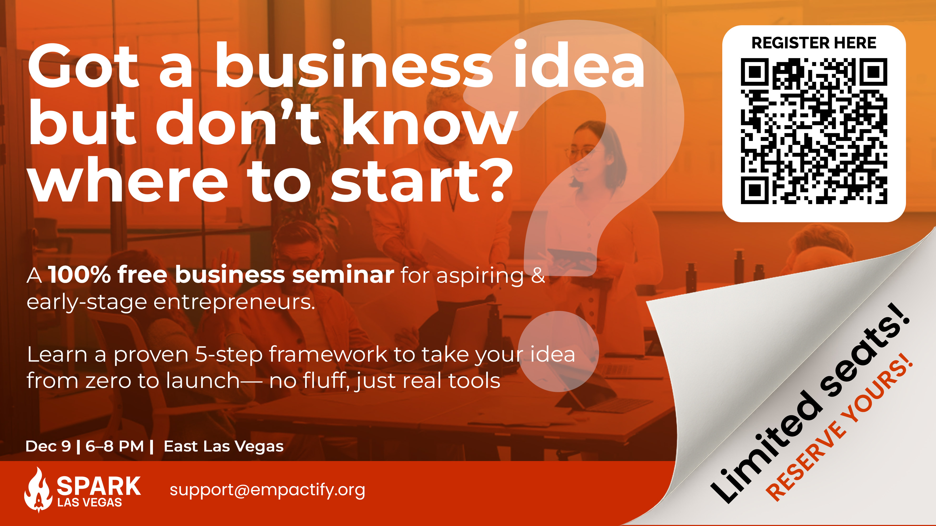 Yes, it’s 100% free. There’s no hidden upsell or hard pitch. Spark Las Vegas was created to give back to the entrepreneur community — to inspire, educate, and connect founders across the city.